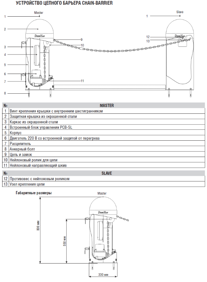 СОСТАВ КОМПЛЕКТА CHAIN-BARRIER: