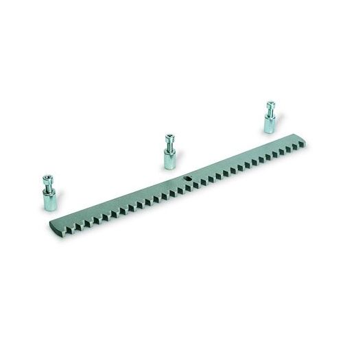 Зубчатая рейка 30*8 длиной 1 метр, предназначена для перемещения сдвижных ворот. Рейки стыкуются между собой и закрепляются на воротах. Длина рейки составляет один метр, что позволяет точно подобрать нужную длину зубчатого полотна для любой ширины проема. Благодаря мощным зубьям рейка выдерживает интенсивную эксплуатацию и длительный срок службы. Кроме того рейка имеет антикоррозионное покрытие, что в течение всего срока службы сохраняет ее прочность и эстетичный внешний вид.