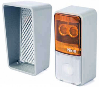 Фотоэлементы NICE: NICE EPMOR — беспроводные фотоэлементы с отражателем имеет датчик обнаружения присутствия для систем автоматики, устанавливаемые на воротах, дверях или шлагбаумах по стандарту EN 12453. Применяемая технология — непрямая оптическая интерполяция посредством фотоэлемента и зеркально-линзового объектива с использованием модуляции оптического излучения.