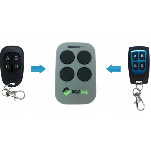 1. Заменить оригинальный пульт HomeGate. Пульт добавляется в приёмник как оригинальный пульт. 2. Сделать копию (дубликат) пульта (с пульта на пульт) с уже добавленного в приёмник пульта HomeGate (можно вне зоны действия приёмника) – используйте эту возможность только если штатным способом добавить новый пульт в приёмник не представляется возможным. При этом исходный пульт и пульт-дубликат будут работать «в догонялки» (к примеру, после 3-х использований одного пульта второй пульт сработает после 4-го нажатия, и так же наоборот). Таких дубликатов можно сделать неограниченное количество.